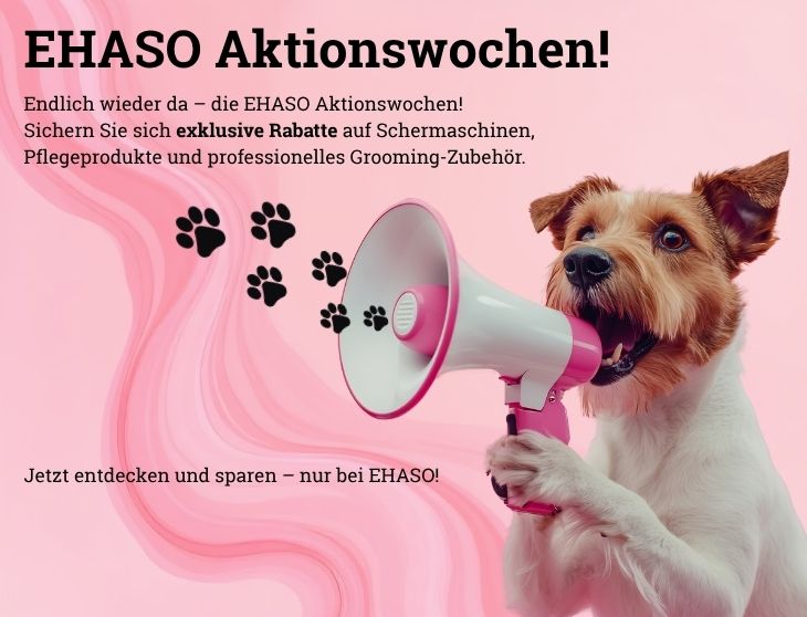 Unsere Produkte dienen dazu, Hunde zu verschönern und ihnen bestmögliche Pflege angedeihen zu lassen. Unser Bestreben ist es, Kunden kompetent zu beraten und über Produkte und Innovationen zu informieren. Als autorisierter Fachhändler sind wir Ihr Ansprechpartner für alle Schleifarbeiten an Scheren und Scherköpfen sowie Wartungs-, Reinigungs- und Reparaturarbeiten an Schermaschinen und Zubehör. So steht EHASO seit nunmehr über 80 Jahren als Berater und Lieferant für Scheren, Schermaschinen und Hundepflegeartikel im Dienste des Kunden.