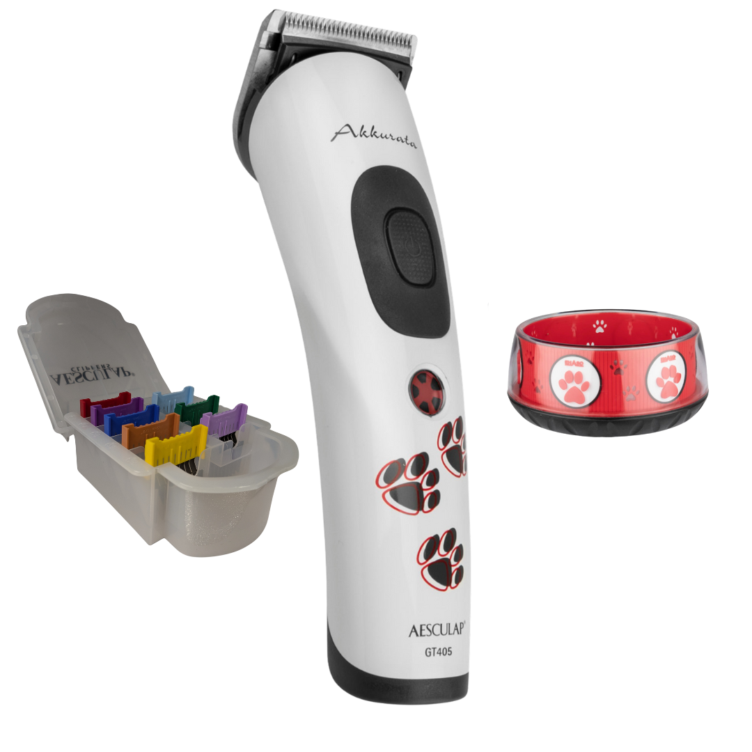 AESCULAP Akkurata + Aufschiebekammset (28509) + Napf 3D Hundeschermaschine (kabellos)