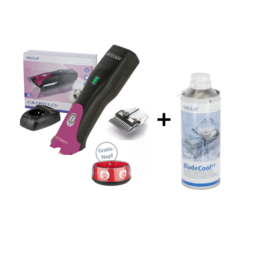 AESCULAP Favorita CLi Pink Hundeschermaschine inkl. 1 Akku und Scherkopf bis 5 mm + Napf
