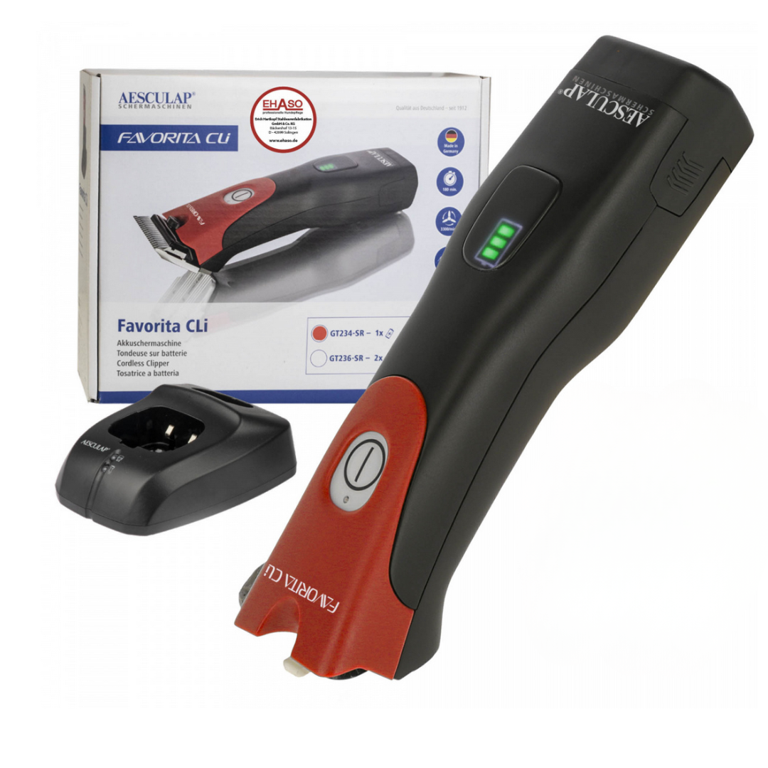 Das beliebte Favorita System erhält kabellose Verstärkung!Mit der Aesculap Favorita CLi sind Sie für den Alltag in Ihrem Hundesalon oder auch bei Ihnen Zuhause bestens gerüstet. Die Maschine ermöglicht ein ermüdungsfreies Arbeiten da sie ergonomisch geformt ist und perfekt ausbalanciert ist. Sie ist nicht nur ein Leichtgewicht mit 390 g, sie verfügt auch noch über eine Öl-Erinnerungs-Anzeige, welche Sie an das regelmäßige ölen des Scherkopfes erinnern soll. Mit ihren 63 dB ist die Schermaschine besonders gut für geräuschempfindliche Hunde geeignet.