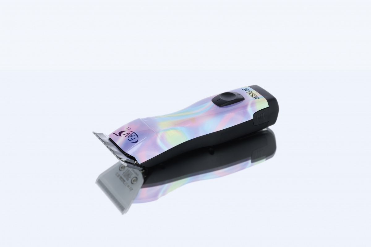 Die FAV5 CL (Cordless) HORSE Schermaschine in der Special Edition RAINBOW ist technisch identisch mit allen FAV 5 Modellen, verfügt jedoch über einen extra breiten Scherkopf, der sich ideal für die (Teil-)Schur von Pferden eignet.