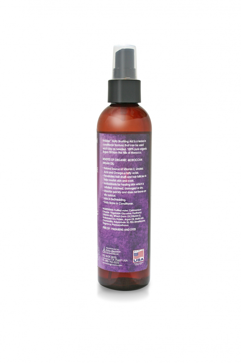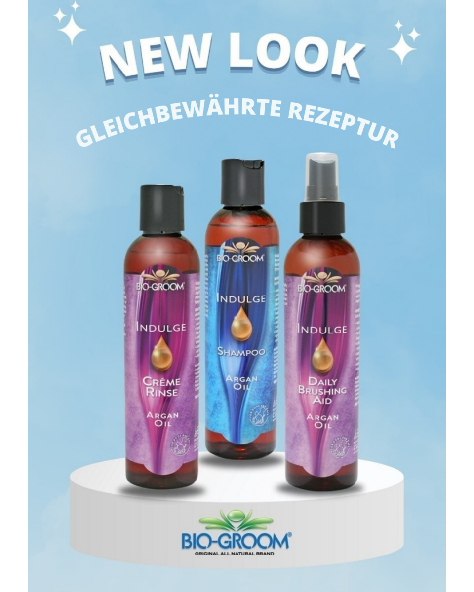 Natürlich mildes Spray mit 100% purem Arganöl aus den Hügeln von Marokko. Es ist ein Leave-In Conditioner, der tief in den Haarschaft eindringt und Haut und Fell nährt um das Fell kämmbarer zu machen. Das Spray ist mit natürlichen Inhaltsstoffe wie Vitamin E, Linolsäure und Omega-6 Fettsäure versetzt. Trockenes, zerstörtes und beschädigtes Fell wird mit Hilfe von Antioxidanten wieder aufgebaut. "Indulge" zieht schnell ein und hinterlässt keine öligen Rückstände.