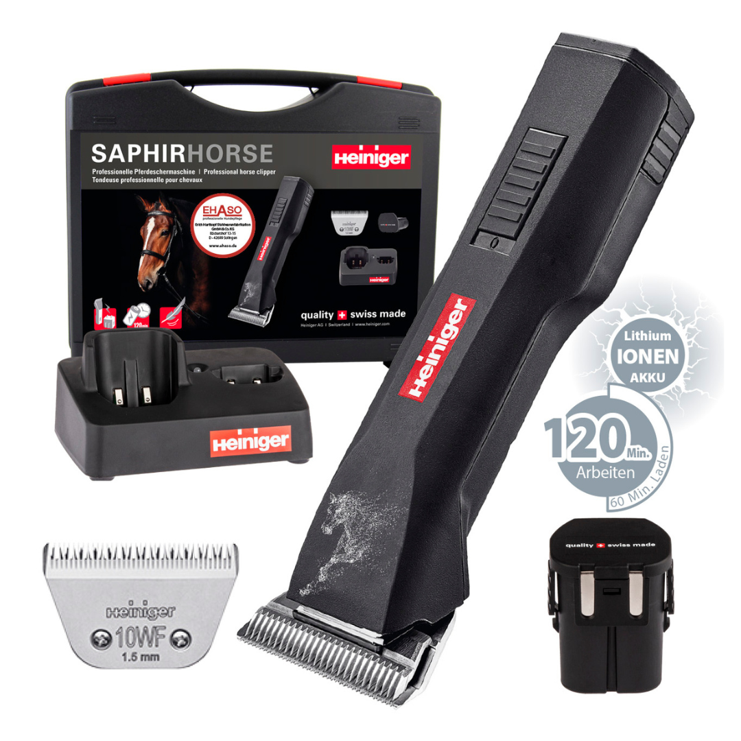 HEINIGER Schermaschine SAPHIR Horse inkl. extra breitem Scherkopf #10WF (1,5 mm) & 2 Akkus