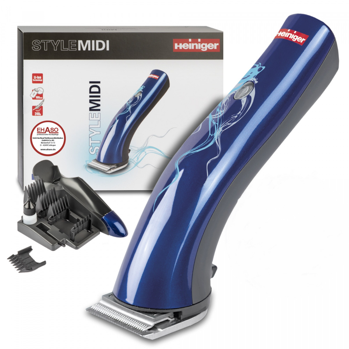 Importeur (Schermaschine, Napf und Aufsätze): Erich Hartkopf Stahlwarenfabrikation GmbH & Co. KG, Bäckershof 13, 42699 Solingen, Deutschland, info@ehaso.de