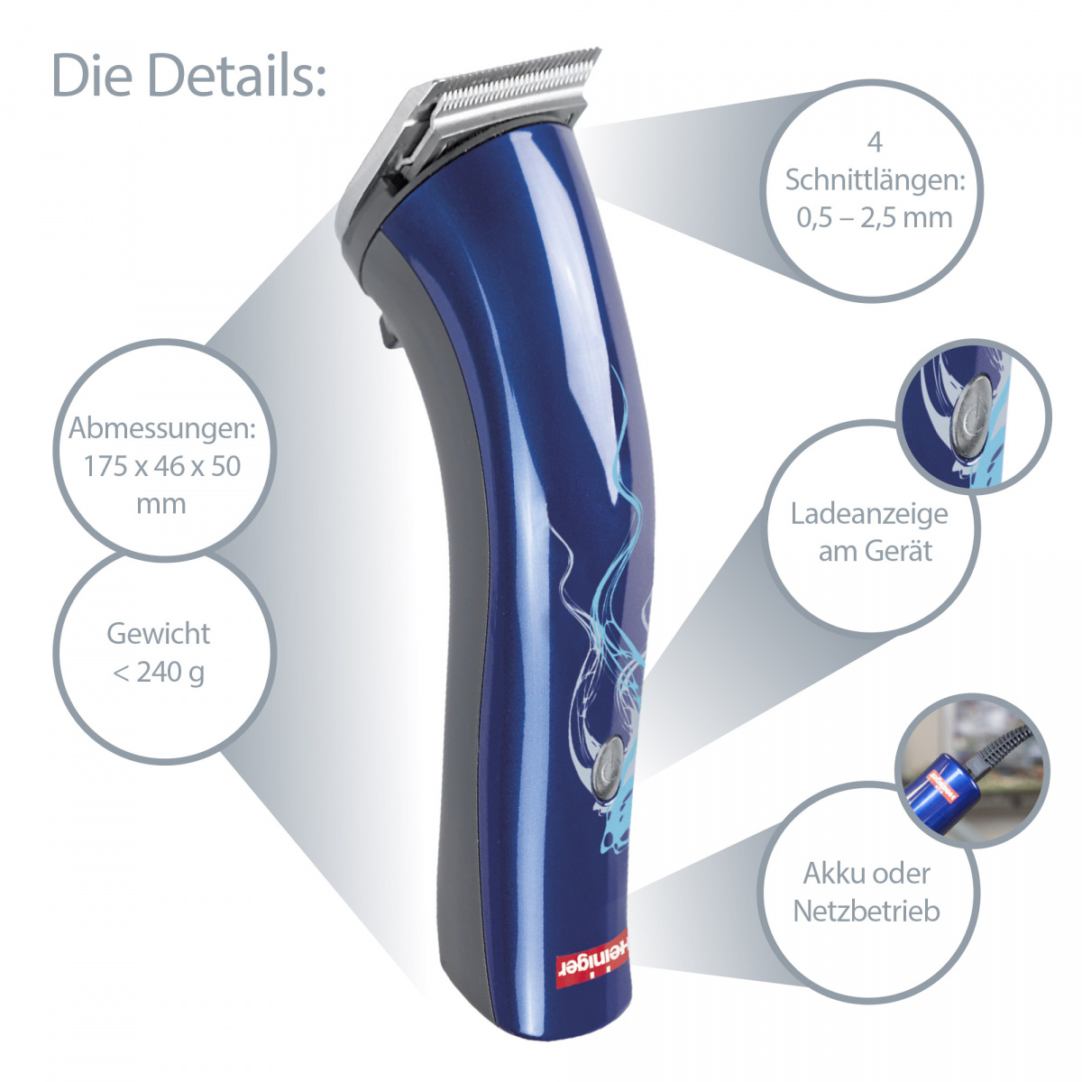 Hersteller Schermaschine: Heiniger AG, Industrieweg 8, 3360 Herzogenbuchsee, Schweiz, info@heiniger.com