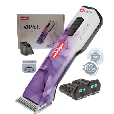 Die neuste Lithium-Ionen-Akku-Technologie sorgt dafür, dass über 240 Minuten kabellos geschoren werden kann. Innerhalb nur einer Stunde ist der Akku wieder vollständig geladen. Dank der im Akku integrierten Ladestandsanzeige ist die zur Verfügung stehende Restdauer jederzeit ersichtlich. Die Opal ist ergonomisch auf dem neusten Stand und liegt perfekt in der Hand. Zudem ist die Maschine sehr leicht und klein. Dies ermöglicht den Profis im Grooming-Bereich, Hunde-, Pferde- oder Kuhstyling sowie Veterinärwesen mühelose Arbeit.