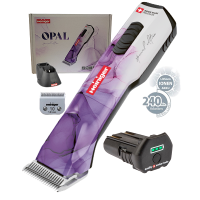 Die neuste Lithium-Ionen-Akku-Technologie sorgt dafür, dass über 240 Minuten kabellos geschoren werden kann. Innerhalb nur einer Stunde ist der Akku wieder vollständig geladen. Dank der im Akku integrierten Ladestandsanzeige ist die zur Verfügung stehende Restdauer jederzeit ersichtlich. Die Opal ist ergonomisch auf dem neusten Stand und liegt perfekt in der Hand. Zudem ist die Maschine sehr leicht und klein. Dies ermöglicht den Profis im Grooming-Bereich, Hunde-, Pferde- oder Kuhstyling sowie Veterinärwesen mühelose Arbeit.