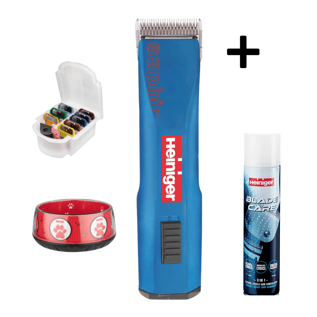 HEINIGER Saphir Akku-Hundeschermaschine mit Scherkopf, Aufsteckkammset+Napf