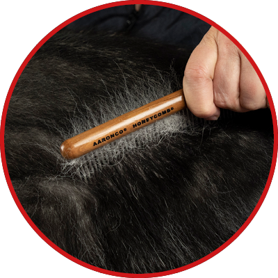 Der runde Holzgriff dieser Hundekämme von Aaronco liegt gut in der Hand und lässt sich auch bei sehr dichtem Fell leicht führen. Diese Kämme werden zum Entfilzen benutzt und gewährleisten ermüdungsfreies, sicheres Arbeiten. Den einreihigen Mattaway können Sie beim Afghanischen Windhund oder beim English Springer Spaniel einsetzen, während der Wundercoat’r besonders für starke und feste Unterwolle geeignet ist, z.B. Australian Shepherd oder Hovawart.