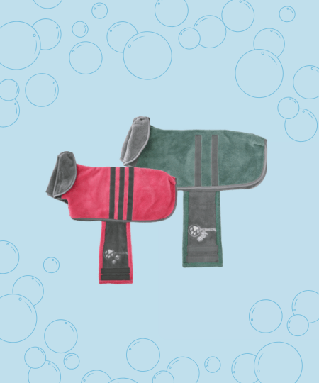 Flauschige Hundebademäntel aus Coral Fleece super saugfähig, angenehm weich und stylisch. In Pink und Salbei für warme, kuschelige Momente nach jedem Bad 🐶🛁