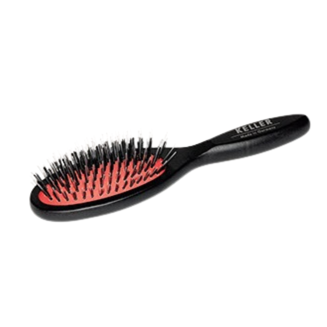 Die Bürste verfügt über extra feine Borstenbündel aus Wildschweinborsten, die in Kombination mit einem abgerundeten Nylon-Frisier-Pin ein schonendes und effektives Bürsten ermöglichen. Die feinen Borsten massieren und stimulieren das Fell, während das elastische und strapazierfähige Gummikissen für ein angenehmes Bürsterlebnis sorgt.