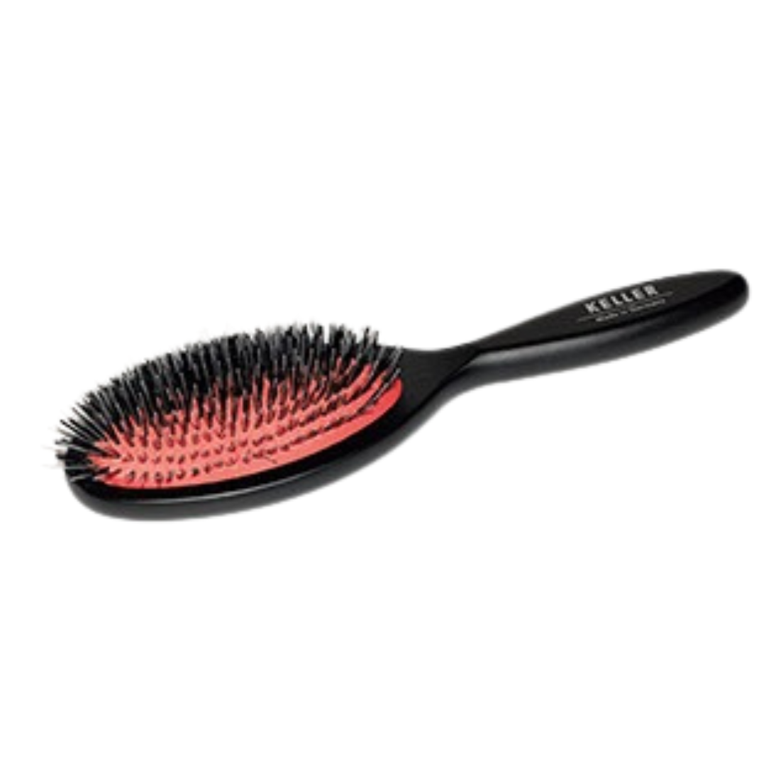 Die Bürste verfügt über extra feine Borstenbündel aus Wildschweinborsten, die in Kombination mit einem abgerundeten Nylon-Frisier-Pin ein schonendes und effektives Bürsten ermöglichen. Die feinen Borsten massieren und stimulieren das Fell, während das elastische und strapazierfähige Gummikissen für ein angenehmes Bürsterlebnis sorgt.