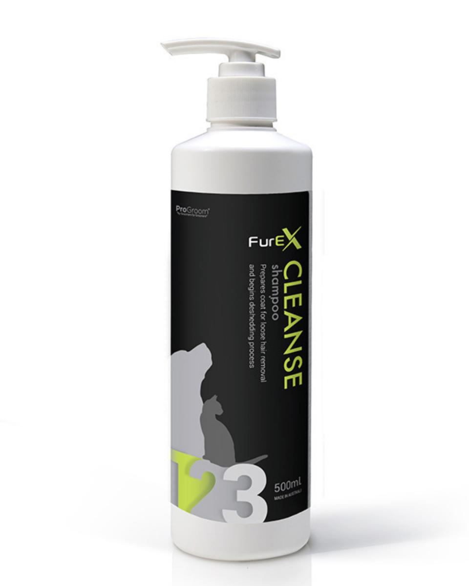 FurEx Cleanse Shampoo Step 1 ist ein tief eindringendes und dennoch sanftes Shampoo, das das Fell reinigt und die ionische Ladung neutralisiert, um Schmutz, Gerüche und überschüssigen Talg zu entfernen. Dadurch wird das Fell auf die Entfernung loser Haare vorbereitet und der Entfilzungsprozess beginnt.