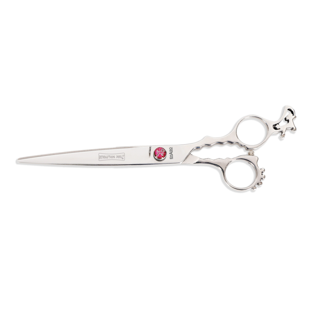 Ob gerade, gebogen oder als Modellierschere – REVOLUTION DOGZ steht für professionelle Qualität mit kunstvoll gearbeitetem DOGZ-Griff und Hundeapplikation.