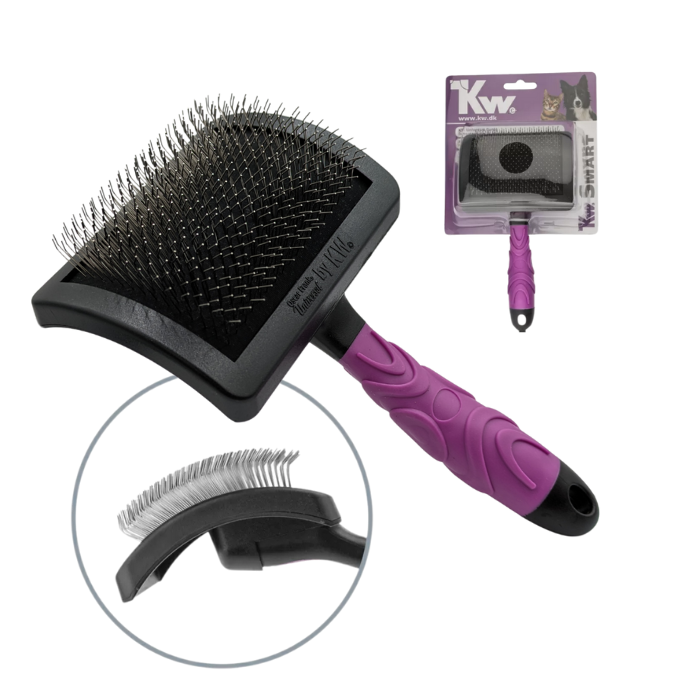 Die KW Smart Bürste erweist sich als unentbehrliches Werkzeug zur Unterstützung beim Fellwechsel, insbesondere bei Hunden mit dichtem Haarkleid. Durch ihre extra starken Pins ist sie besonders effizient beim Entfilzen. Diese kräftigen Pins dringen tief ins Fell ein, gewährleisten ein gründliches Bürsten und stellen sicher, dass selbst das dichteste Fell ordnungsgemäß durchgebürstet wird.