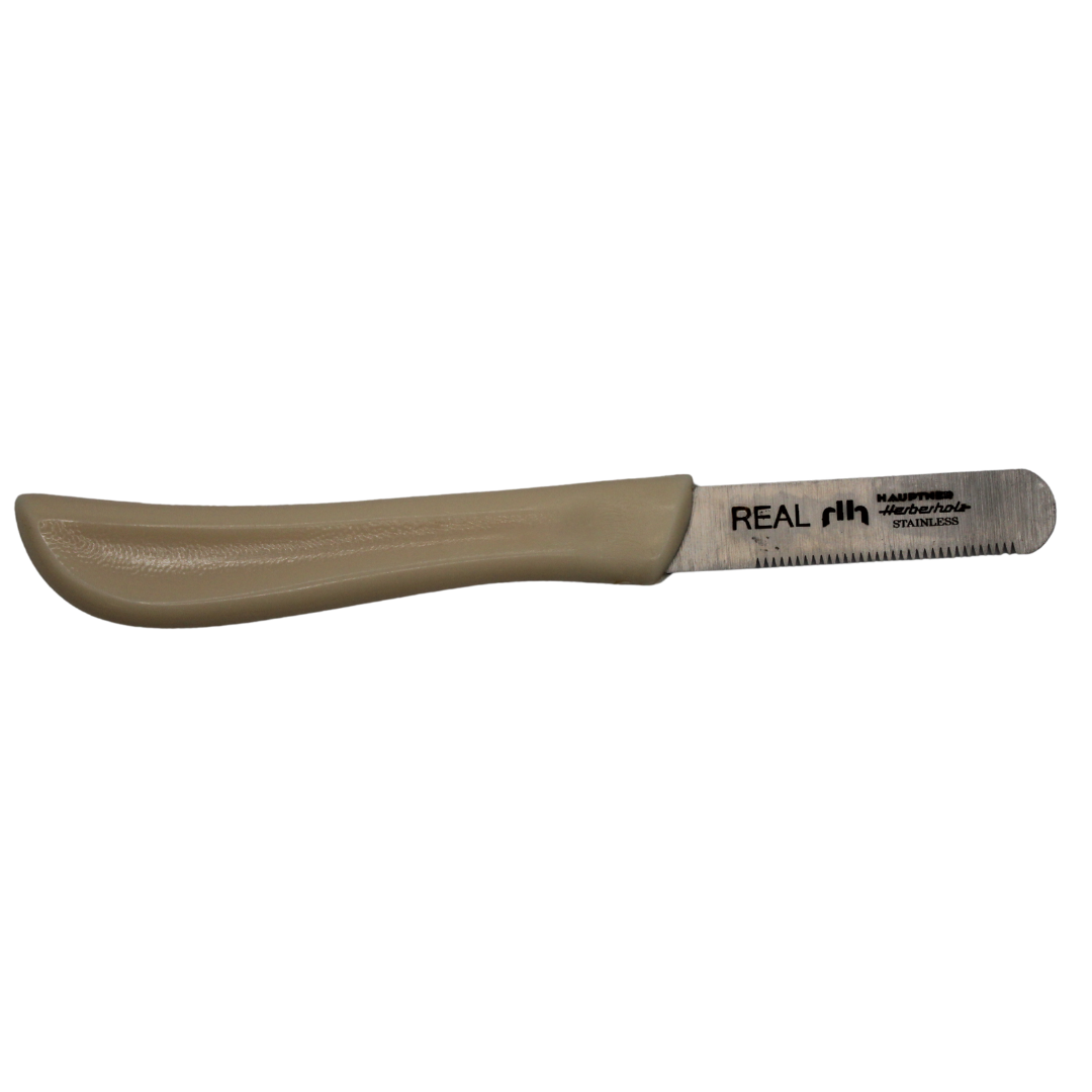 Das Trimmmesser mit Kunststoffgriff bietet eine ideale Lösung für präzise Feinarbeiten, insbesondere im Bereich des Kopfes.
