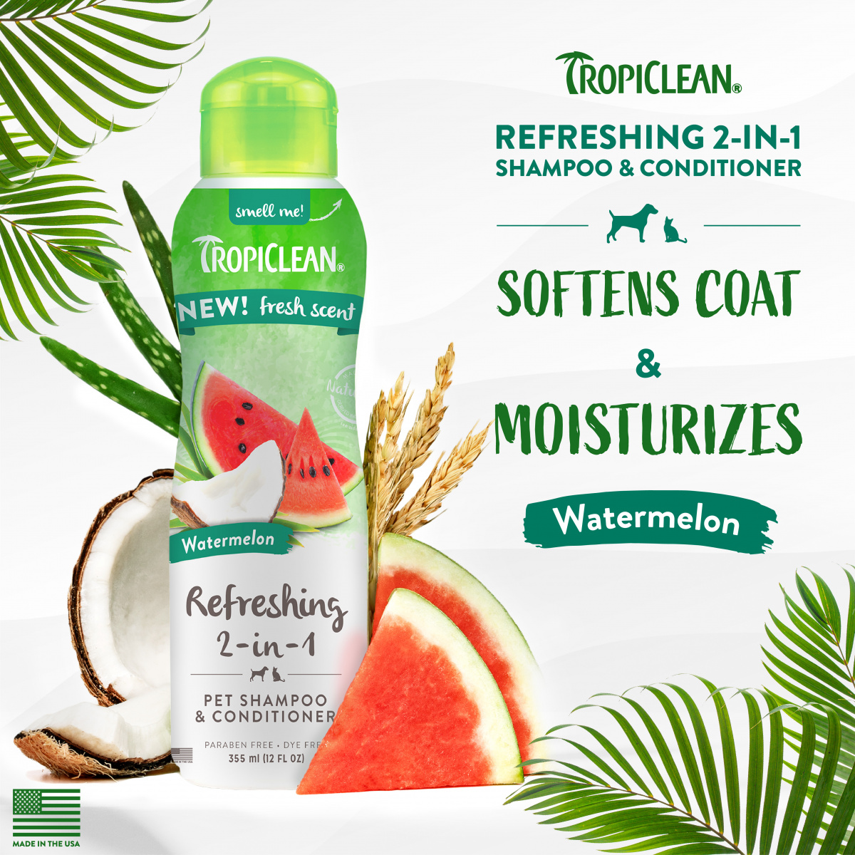 TropiClean Watermelon Refreshing 2-in-1 Shampoo& Conditioner 355 ml.