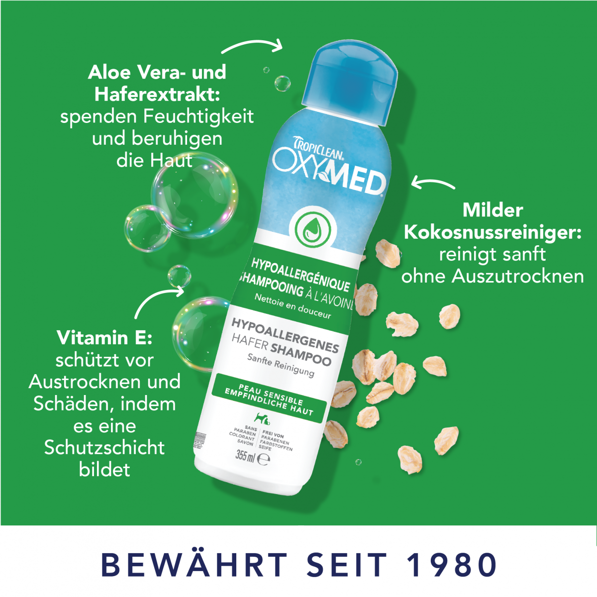 Das TropiClean Hypoallergene Hafer-Shampoo wurde speziell für empfindliche Haut entwickelt und reinigt sanft, ohne zu reizen. Die milde, seifenfreie Formel mit beruhigendem Hafer spendet Feuchtigkeit, pflegt Haut und Fell und unterstützt den natürlichen Schutzmantel der Haut. Ideal für Haustiere mit sensibler oder trockener Haut sowie für Welpen und Kätzchen.