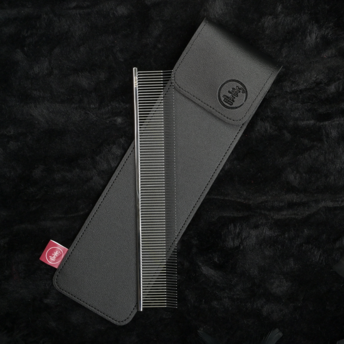 Der Kamm ist für jedes Fell und jede Rasse geeignet und bietet die Vielseitigkeit, die für die professionelle Fellpflege und die Vorbereitung auf Ausstellungen erforderlich ist. Seine ergonomische Form reduziert die Ermüdung der Hände und ermöglicht eine sanfte, kontrollierte Fellpflege ohne Anstrengung.