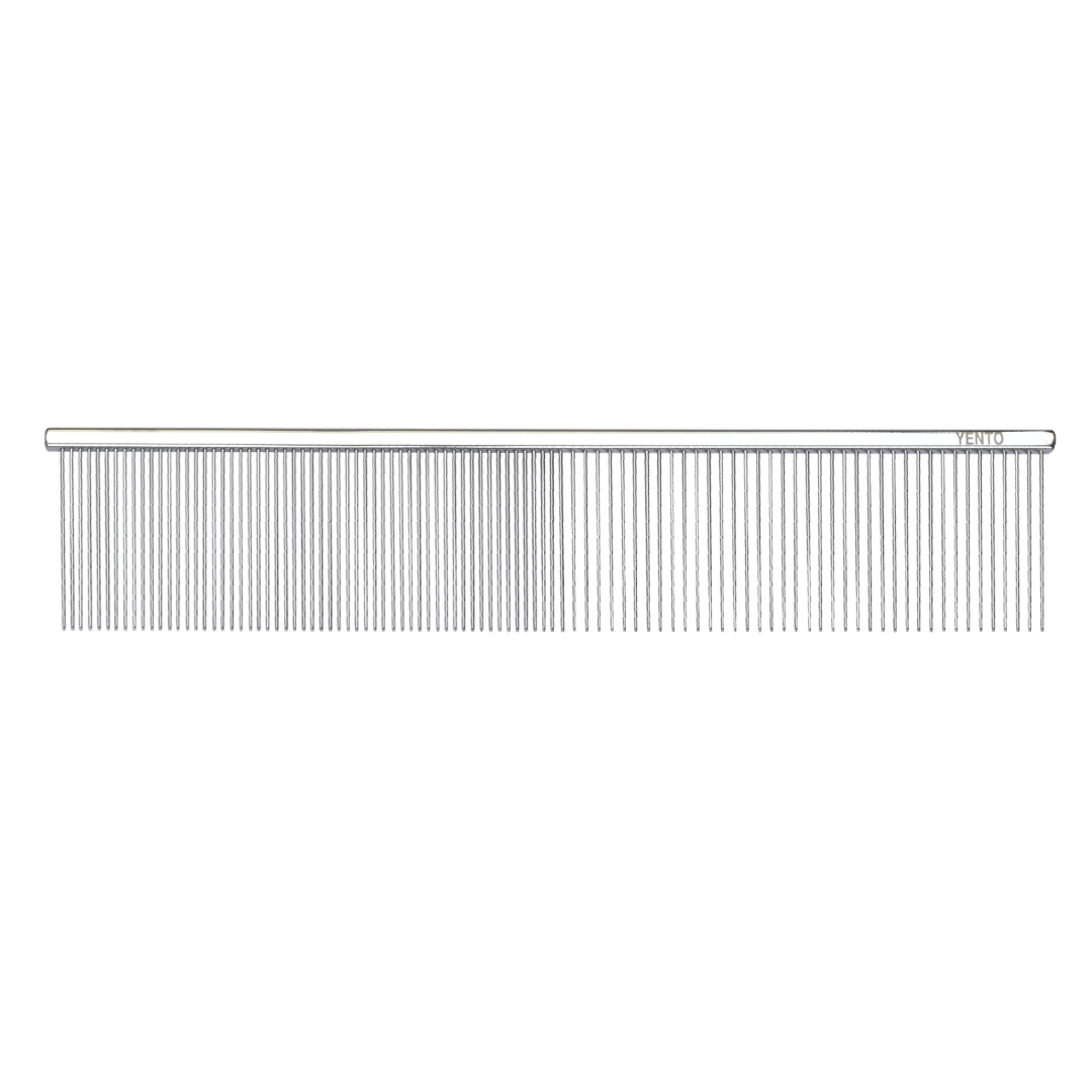 Zähmen Sie jedes einzelne Haar in die perfekte Position für einen aufsehenerregenden Look. Der Yento Ambition Twin-Pin Comb liefert die Leistung, die Sie brauchen. Er ist sozusagen zwei Kämme in einem. Auf der einen Seite befinden sich feinere Pins, die sich perfekt für das Finishen und Stylen von dünnem und weichem Fell eignen.