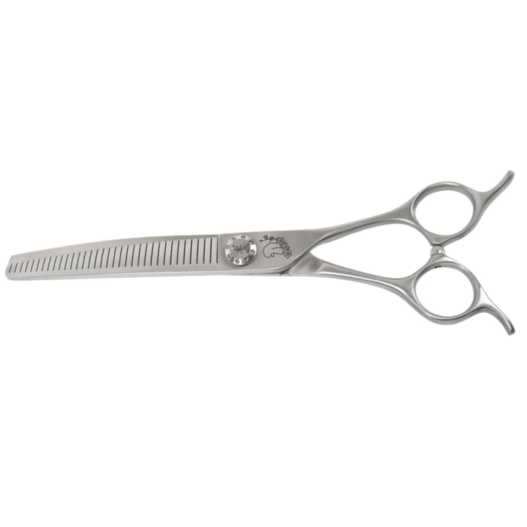 Alle Scheren in unserer Kollektion verfügen über eine konvexe Präzisionskante, die sich perfekt für glatte, scharfe Schnitte über verschiedene Felltypen eignet. Darüber hinaus sind drei ausgewählte Modelle mit einem speziellen mikrogezackten Rand ausgestattet, der fachmännisch entwickelt wurde, um die dicksten, wolligsten und schwierigsten Mäntel mühelos zu bewältigen.
